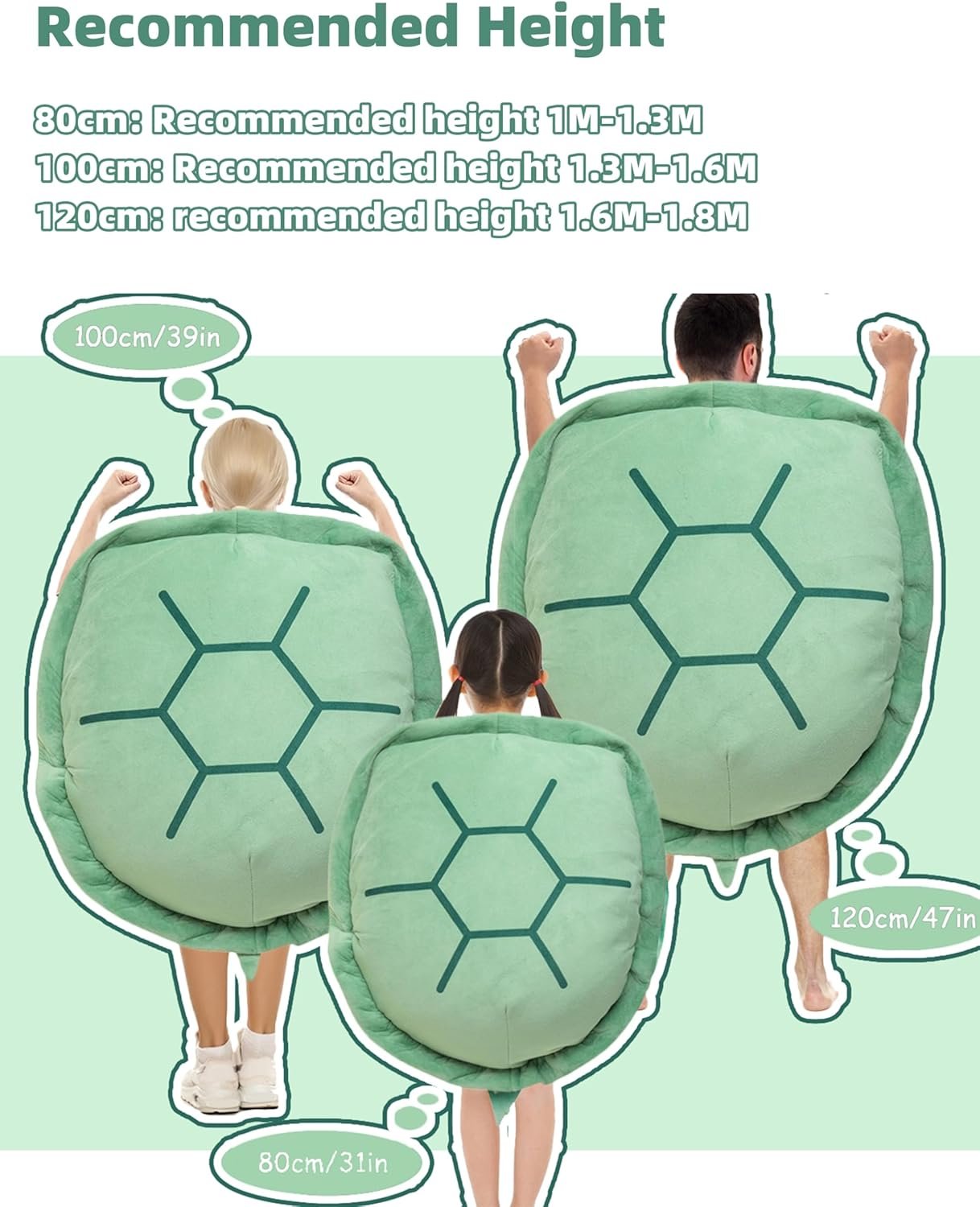 [Material]Our cute wearable turtle shell plush is made of soft stretch fleece and PP cotton filling. The surface is skin-friendly and smooth, very soft and elastic, wearing it on your body makes you feel infinite warmth.