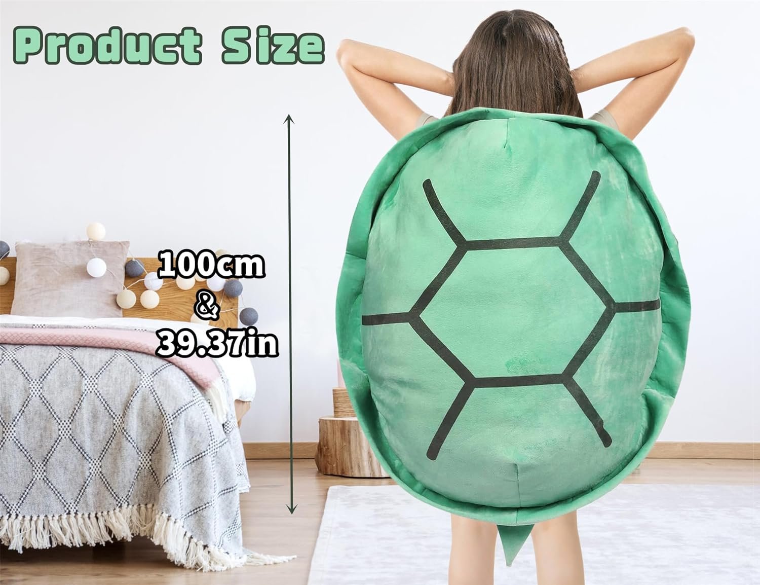 [Wearable] 40 inch giant turtle shell plush pillow. This turtle shell plush has a special feature, it can be worn to instantly turn into a cute little turtle.