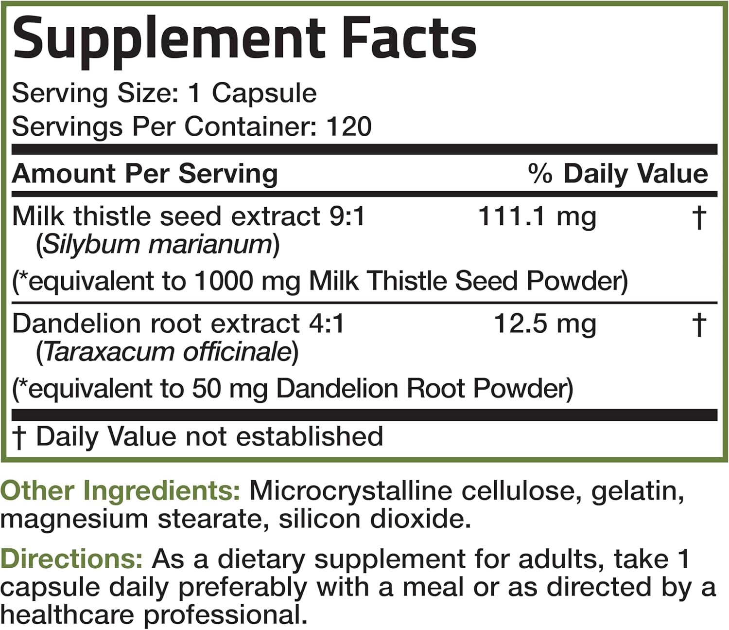 Liver Health Support*: Bronson Milk Thistle with Dandelion Root helps to support healthy liver function.*
