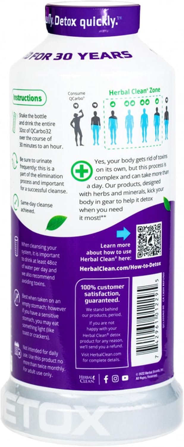 Herbal Clean QCarbo32 Detox Drink has a strong blend of herbs for same-day effects to cleanse and detox the body and eliminate toxins from lifestyle choices, best formula among detox drinks in a saturated market for major body cleanse products