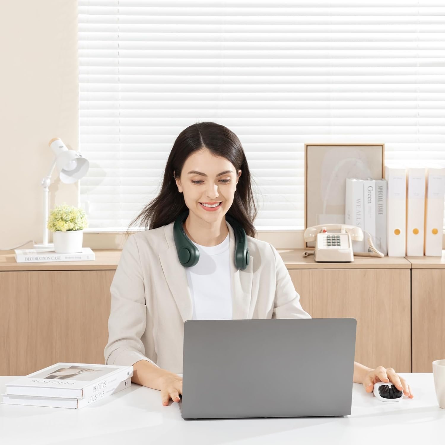 【Safety & 78 Air Outlets】 A novel neck fan that can send the wind without waving your hands by simply placing it on your neck. Designed without wings, it can be used safely by children and the elderly. With 78 air outlets around the neck, it can be used for the entire face around, wherever you be in the concert, watching basketball games, work outdoors, crusie travel,air travel, working out in the gym. It can produce enough air to keep you cool always.