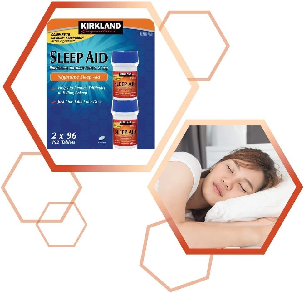 Kirkland Signature Sleep Aid Tablets active ingredient is Doxylamine Succinate 25mg, an antihistamine, that maybe used as a sleep aid by adults and children 12 years and older. Kirkland Signature Sleep Aid Tablets are an easy to swallow medication that helps to reduce difficulty in falling asleep. Sleeplessness can be a result of many things. Stress, being “plugged in” to technology, and even being too active can leave you staring at the ceiling at night.