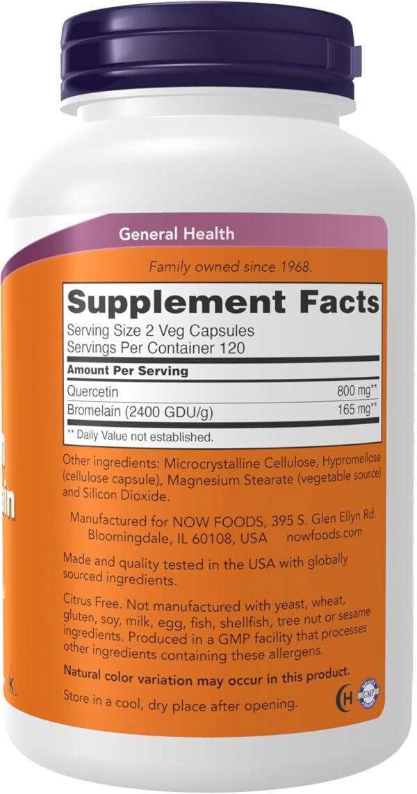 Quercetin is a naturally occurring free radical scavenger that supports healthy seasonal immune system function.* Laboratory studies have demonstrated that quercetin can also help to promote normal respiratory function.* Bromelain has a long history of use by herbalists and is known to help support a balanced immune system response to environmental challenges.* This complementary combination may thus promote year-round respiratory health and support overall seasonal comfort.* Take 2 capsules 20 minutes before meals, twice daily. Persons with sensitive stomachs may prefer to take capsules with food.