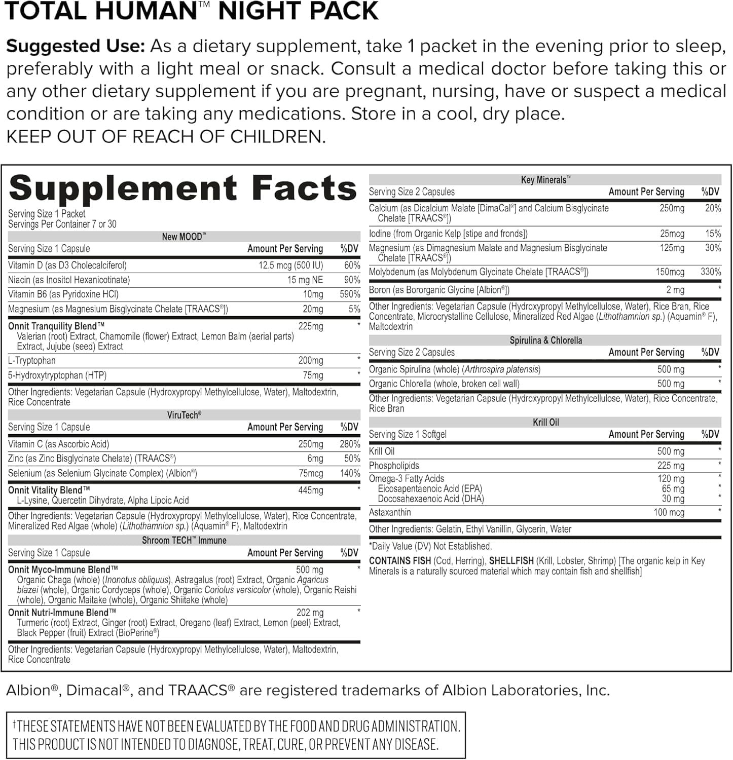 Relax and Recover at Night: Designed to help you relax and nourish your body while resting, the Night Pack supplements for women and men contains New MOOD to promote relaxation, ViruTech immune system support, and Key Minerals for total body support.