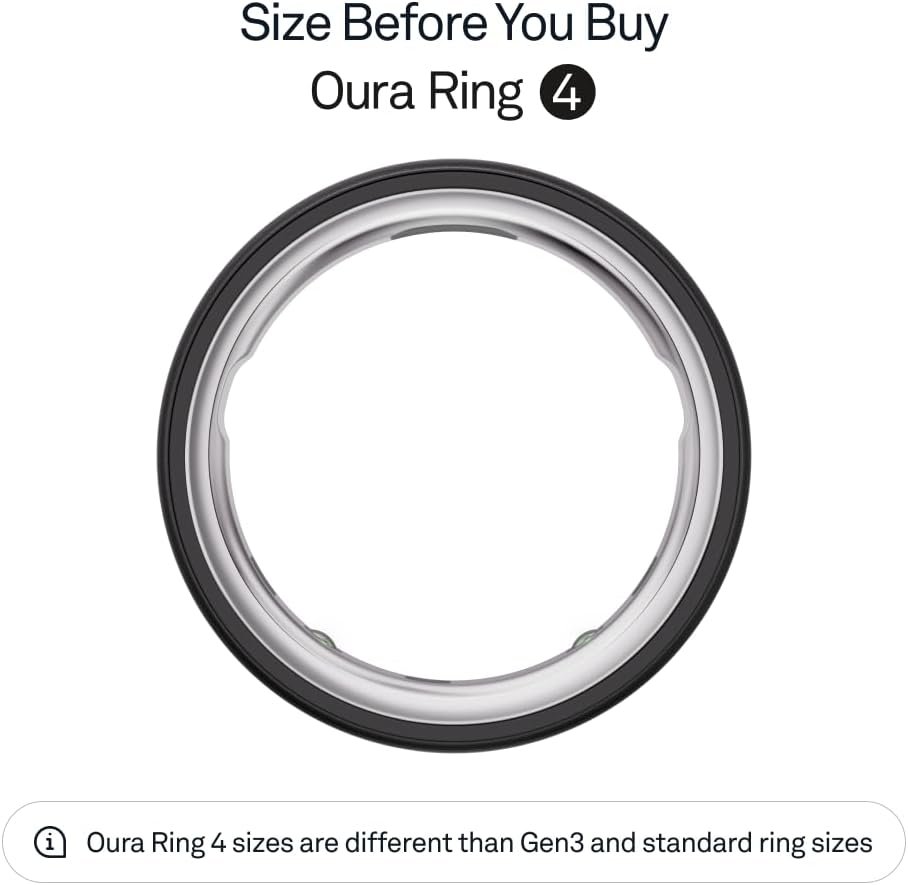 SIZE BEFORE YOU BUY – Oura Ring 4 sizes are different from standard ring sizes. Size yourself with the Oura Ring 4 Sizing Kit. For additional details, see “From the brand” section below