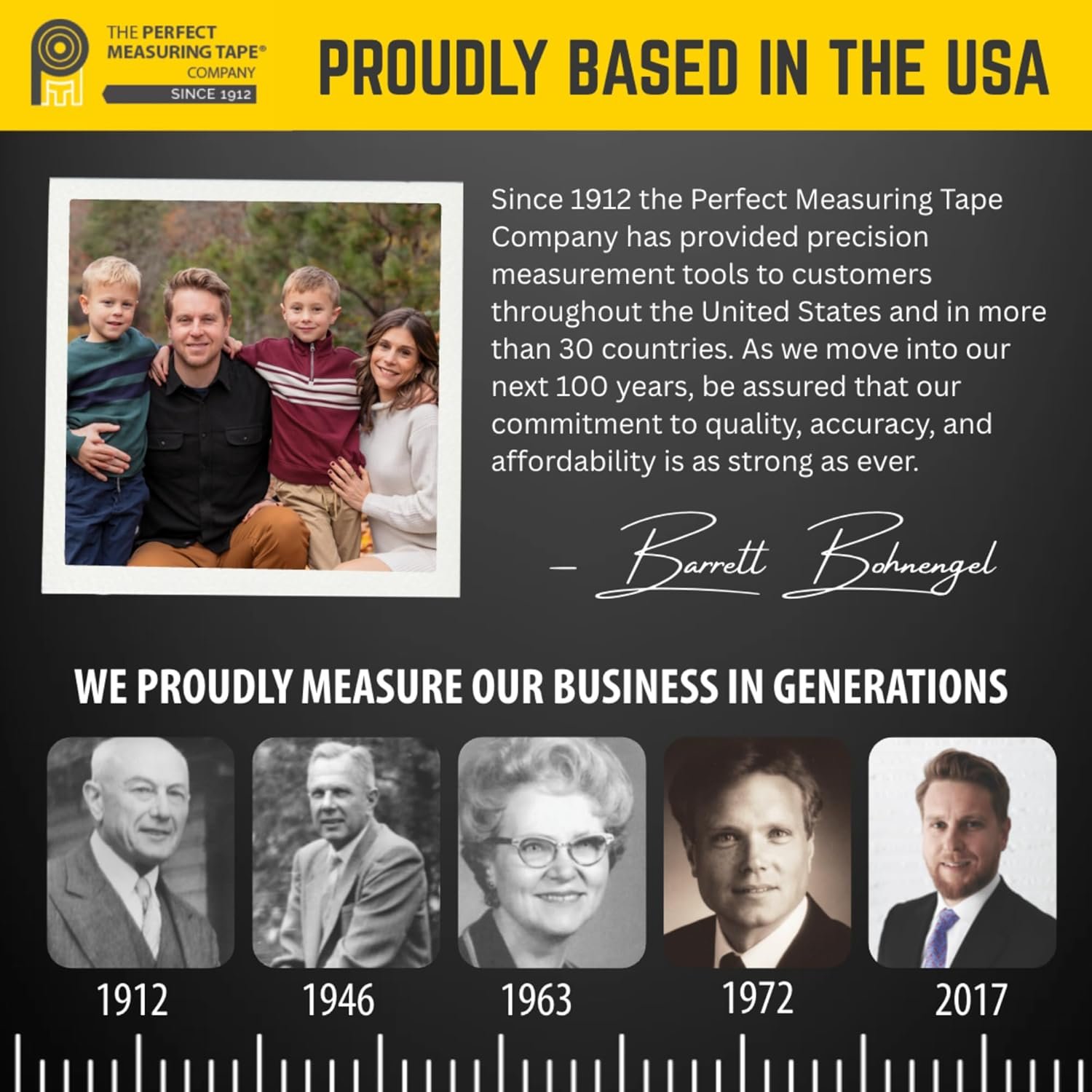 Since 1912 the Perfect Measuring Tape Company has provided precision measurement and inventory systems to customers throughout the United States and in more than 30 countries. As we move into our next 100 years, be assured that our commitment to quality, accuracy, affordability, and dedication to serving our customers is as strong as ever.