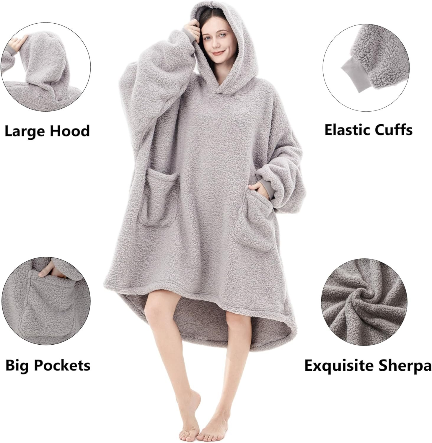 Love this wearable Sherpa blanket! Well made and super soft. I like the elastic on the sleeves. I am 5’2 and it comes down to my knees. Very comfy!