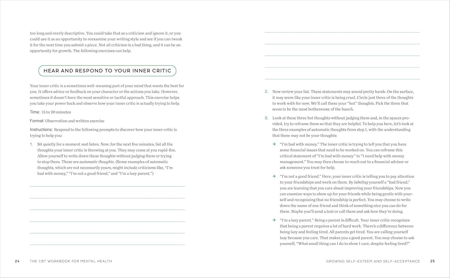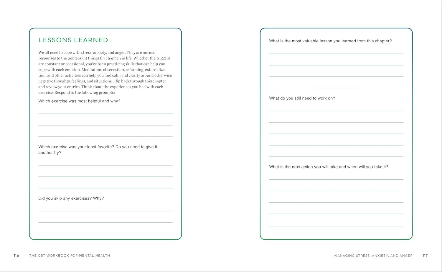Simple exercises―The prompts and exercises in this CBT workbook only take between 10 and 30 minutes, so you can find time to practice them even on your busiest days.