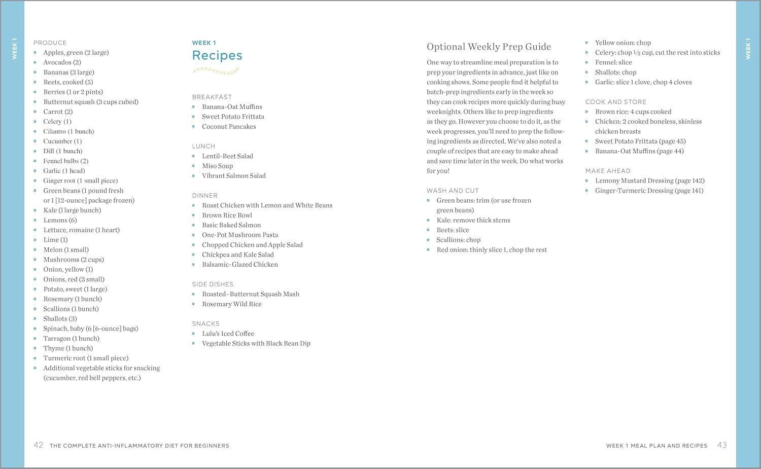 This was a great cook book! Perfect for anyone that is looking for an anti-inflammatory diet that lays out exactly what groceries you need and when you will need them!