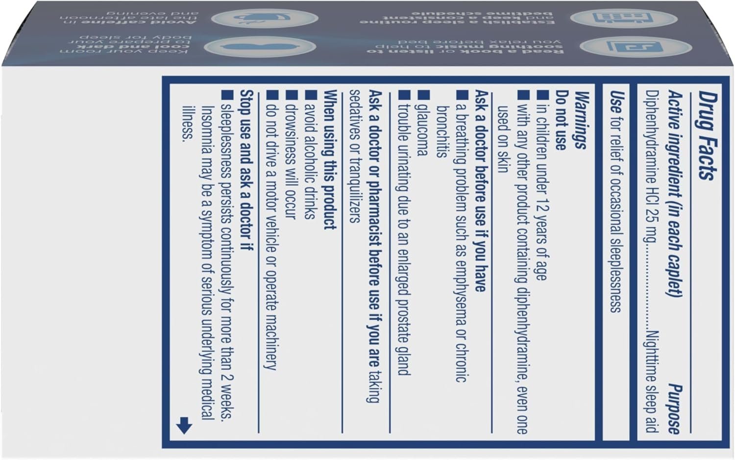 Each caplet of this adult sleep aid contains 25 mg of diphenhydramine hydrochloride as the active ingredient and can be used by adults and children ages 12 years and older