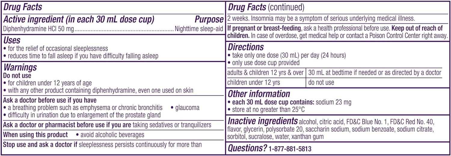 When you’re having trouble getting that sound sleep your body craves, add some Zzzs to your night with ZzzQuil. This ZzzQuil sleep aid works to help you fall asleep fast – in as little as 20 minutes – so you can get sleep when you need it and wake refreshed. All ZzzQuil sleep aid products are non-habit forming and specifically formulated with clinically proven ingredients by our team of dedicated scientists. This ZzzQuil sleep aid contains a non-habit-forming ingredient, Diphenhydramine HCI, which causes drowsiness by blocking the action of histamine, a chemical that sends waking signals to the brain. For this sleep aid, each dose (one 30 mL dose cup) contains 50 mg. ZzzQuil Warming Berry Liquid Sleep Aid tastes great – you’ll look forward to falling asleep whether you are at home or traveling through multiple time-zones. ZzzQuil over-the-counter medicine sleep aids for adults can be used to treat occasional sleeplessness when you need a little extra help getting to sleep. ZzzQuil is the World’s #1 Sleep Aid Brand!† Explore ZzzQuil’s range of products to help you fall asleep, including our line of ZzzQuil PURE Zzzs Melatonin products. †Source Euromonitor International Limited; Consumer Health 2024 Edition; Sleep Aids, all channels, retail selling price, Global Brand Name ZzzQuil 2023 data ^vs. placebo